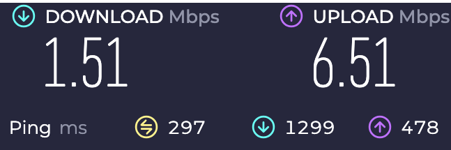 Figure 8: An example Internet speed test performed using UDP as a transport for a VPN connection and then routing traffic over HTTPS on 443/TCP to perform an Internet speed test.